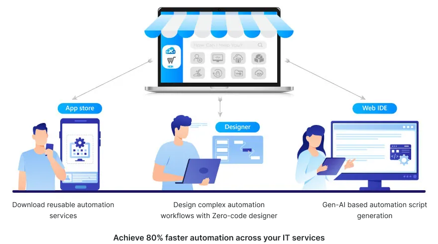 On the other side, the platform enforces enterprise-grade guardrails to ensure security, compliance, and control. Administrators can define who can access what, apply approval workflows, and customize services for specific business needs. With built-in integration to ITSM platforms like ServiceNow and pre-defined governance frameworks, enterprises retain full control over policies and configurations. This dual approach balances empowerment with oversight, ensuring that while services are democratized for users, they remain compliant, secure, and aligned with enterprise standards.
